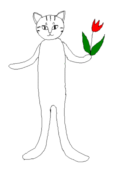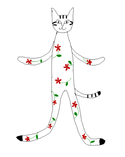 わたしは、ねこ。 ほんとうは、ちゃとらもよう。 でも、ときどき、 ちがうふくを、きたくなるの。 きょうは、はなもようよ。 どう? |