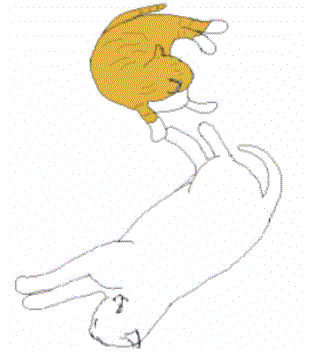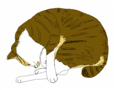 ストーブのまえで、 おひるね。 あったかくって、 のびちゃう。 あーあ、きもちいいなあ。 |