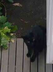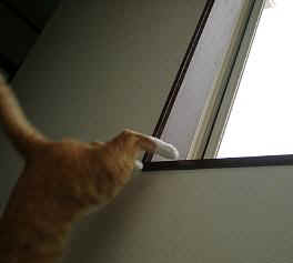 | 台所のマットでぐったりのミック。 | 暑くて、でれでれのトト。暑いときは、どんなポーズをしても、暑いよ。 | 窓から飛び降りるアリー。 | 『特別編』 始めて見た黒猫。トトが異様な鳴き方をしたので、窓から覗いたら、黒猫がいました。 |