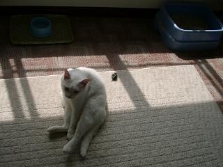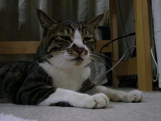 | 26日、怪我もだんだん良くなってきて、少し落ち着いてきたミック。でも、窓際で番犬のように、パパネコが外を通るのではないかと警戒している。 | 27日、2階の部屋でくつろぎ中のトト。後ろの小さな物体は、ネズミのおもちゃ。この部屋は日当たりがよくて、居心地がよかったね。 | 27日、2階の部屋でお昼寝中のアリー。『寝てるのに〜。写真なんて撮らなくてもいいよ〜』う〜ん、迷惑そうですね。。 |