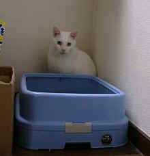 | お隣の庭をお散歩中のミック。草を食べたり、よその猫をチェックしたり、することはいろいろ。時々強力な奴にでくわしたりもするしね。 | なぜだかトイレの向こう側に入り込んだトト。何か考える事でも? | 今の一番のお気に入りの、この前雨が降ったとき新聞が入っていたビニール袋で遊んでいるアリー。なんて安上がりなお方。 |