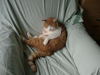 ソファで眠そうなアリー。アリーはまるまるとしてきて、とても丈夫そうな女の子。 |