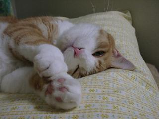 今度は満足そうな寝顔。ふかふかだもんね。 |