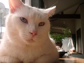 暑さと眠さで虚ろな目のアリーさん。でも、トトとアリーはときどき暑いのにひなたで寝てたりします。ま、人間の日光浴と同じかな。ビタミンDを摂らなきゃと思っているのかも。 |