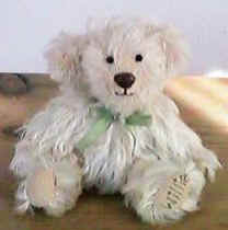 これは、確か、代官山のテディベア専門店で買った生地(けっこう高かったはず)で作ったテディ。 表情は、よくみると、気の弱そうな、こわがりのように見えません? トトに似てるかも。。。 |