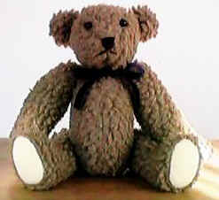 一番最初に作ったテディ。目の位置で、全然表情が変わるので、むずかしかった。 ちょっとおとなしめの表情になりました。 |